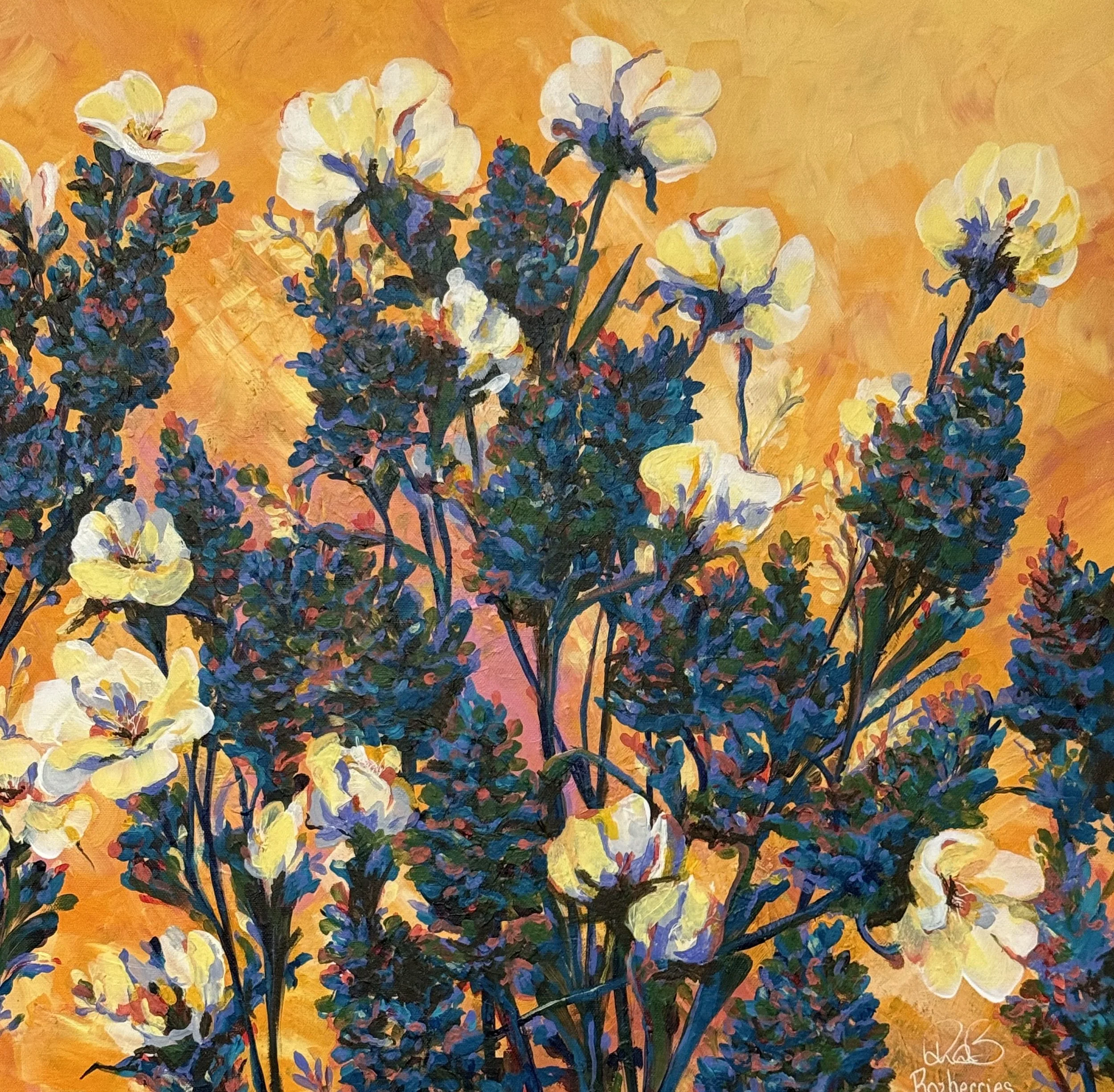 This painting was, at its heart, an exploration of golden light. My artistic process is often a private, meditative one. I seldom use photo references; instead, I study scenes in the world, absorbing the light and feeling of a place. I then bring to the canvas what my mind can recall, allowing memory and imagination to guide the work. This approach gives me a creative freedom that transcends literal representation. Occasionally, flowers emerge in the painting that cannot be found in the natural world, blending reality with an ethereal quality. My hope is to invite viewers to experience light and color through this uniquely personal lens.