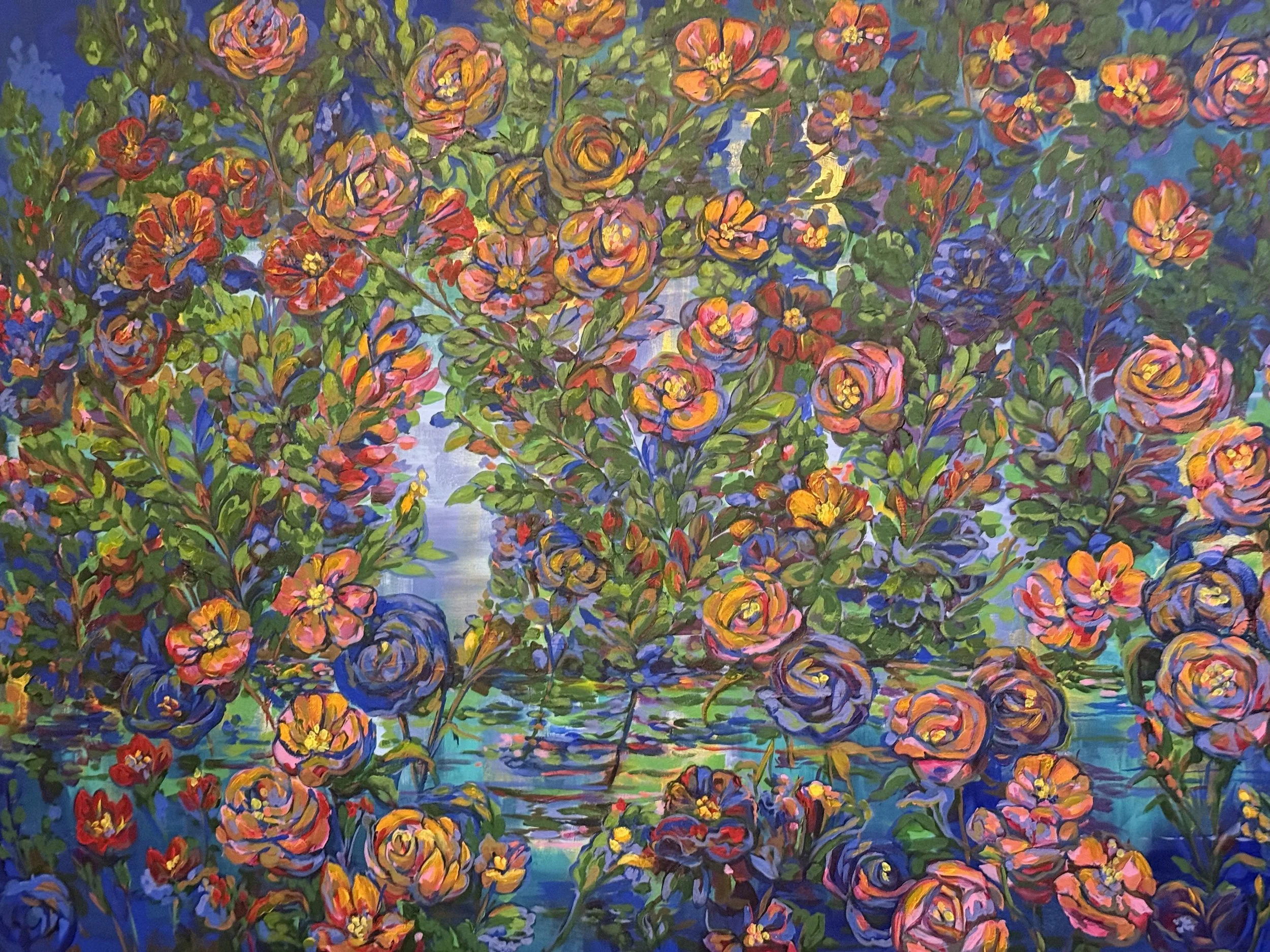 The dense wall of blossoms was no longer about cleaning, but had become a tapestry of cherished memories—full, abundant, and overflowing. The painting became a meditation on peace, tranquility, and acceptance. It stands now as an artifact of that journey, a testament to how the most cluttered spaces, both internal and external, can be reclaimed. It is a reminder that what was once discarded can be transformed into something beautiful and whole, filled with a deep and abiding love for all that has been.